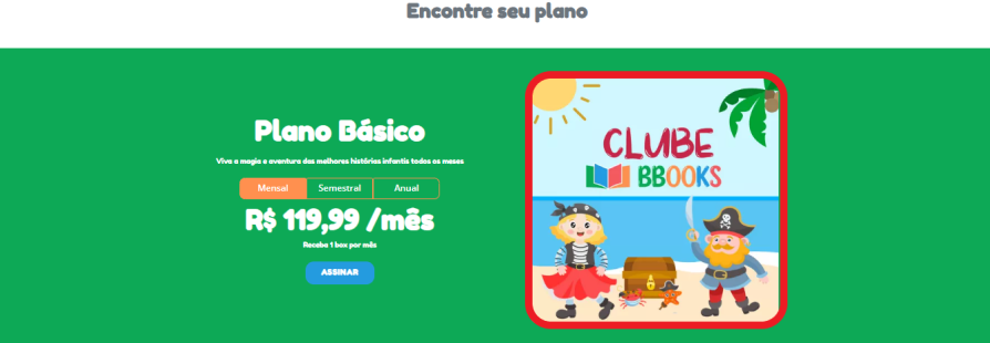 A Imagem do Plano, a Descrição e a Descrição do Plano de Assinatura mostrados são os que pertencem ao primeiro plano tagueado com alguma das tags “plano_1”, "plano 2" ou “plano_3”. Os outros não são exibidos. Cada plano criado e tagueado com a respectiva tag será mostrado como modalidade para escolha.